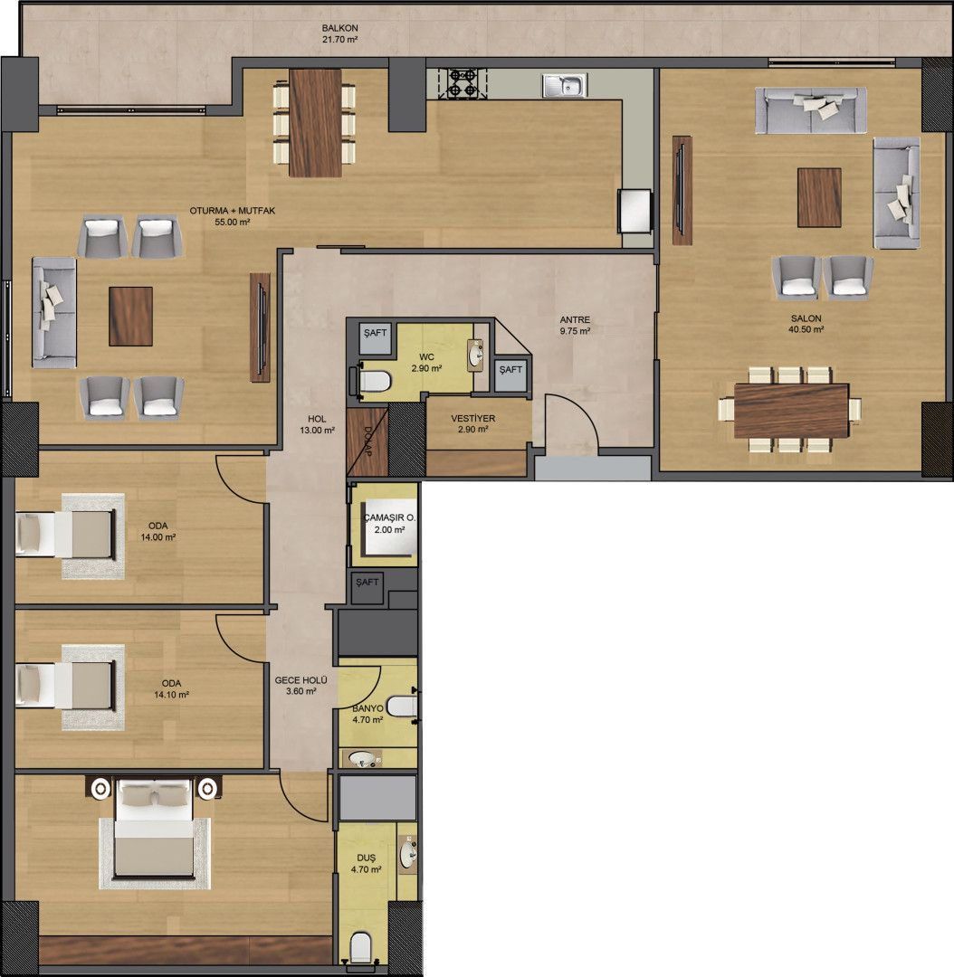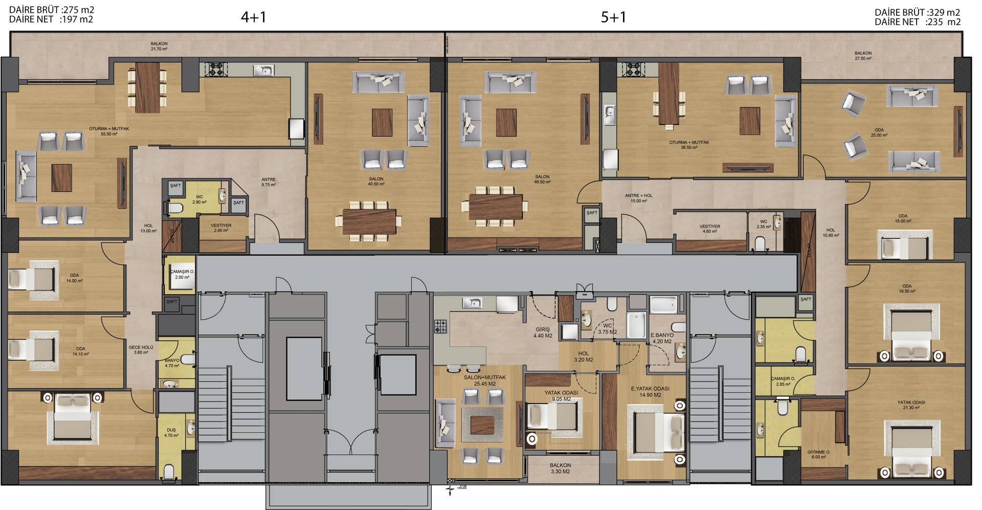 Gün ışığını içeri davet eden geniş açıklıklar ve titizlikle planlanmış yaşam alanları sayesinde eviniz; hem konforlu hem de güvenli bir yaşam alanına dönüşür. 4+1 dairelerimiz, aileniz için prestijli, huzurlu ve güvenli bir gelecek sunar.